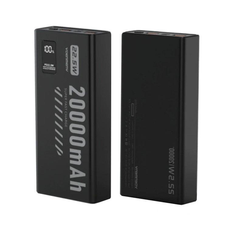 پاوربانک اورجینال V DENMEN V DP45 تولید شرکت وی دنمن از یک باتری لیتیومی با ظرفیت 20000 میلی آمپر ساعت بهره میبرد. با داشتن این پاوربانک دیگر بابت تمام شدن شارژ باتری گوشی موبایل، تبلت دوربین دیجیتال و لوازمی از این قبیل نگرانی نخواهید داشت؛ زیرا میتوانید در هر شرایطی بدون نیاز به پریز برق باتری گوشی موبایل یا دیگر لوازم سازگار با این محصول را تنها با استفاده از یک کابل USB شارژ کنید. در ساخت این دستگاه از تکنولوژی شارژ سریع Quick 3.0 Charge استفاده شده است. پشتیبانی از شارژ سریع به این معنی است که باتری دستگاه شما با کمک این پاوربانک سریعتر از شارژرهای معمولی شارژ خواهد شد. البته باید توجه داشته باشید که تکنولوژی شارژ سریع تنها با دستگاههای دارای استاندارد شارژ سریع و در دستگاههای معمولی امکان استفاده از این تکنولوژی وجود ندارد. با استفاده از نمایشگر LED تعبیه شده در این پاوربانک، شما میتوانید وضعیت شارژ باتری از طریق نمایشگر LED روی بدنه بررسی کنید. بدنه ی این پاوربانک از جنس پلاستیک است. توان کلی این دستگاه تا 22.5 وات میباشد و این دستگاه مجهز به فناوری PD نیز میباشد که قابلیت مناسبی برای کاربران گوشی های نسل جدید و آیفون میباشد.a