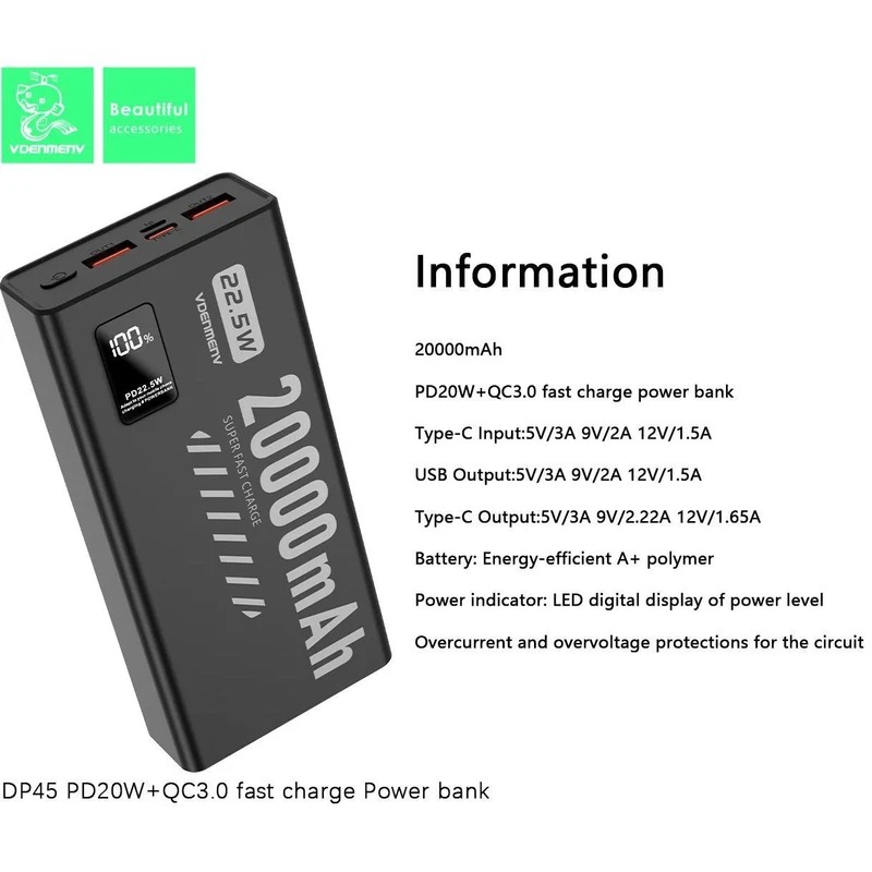 پاوربانک وی دنمن وی مدل DP45 ظرفیت 20000 میلی آمپر ساعت