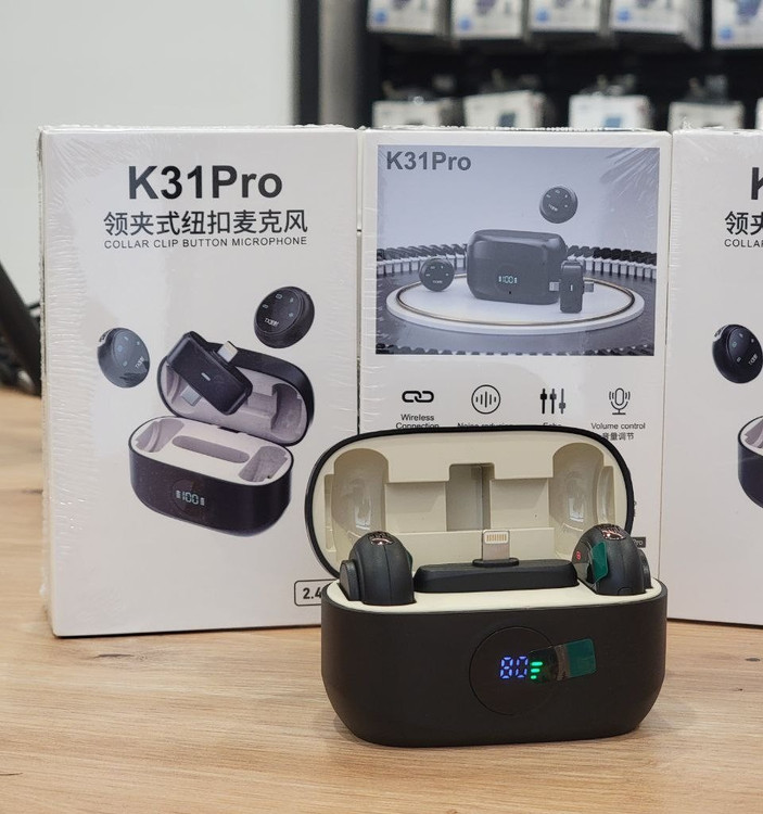 میکروفون یقه ای K31pro دو کاربره و دو کاره که هم کجتهای تایپ سی و هم آیفون را ساپورت میکند، برد بیش از بیست متر، قابلیت اتصال مستقیم بدون نیاز به بلوتوث و یا برنامه، کیس شارژ مجهز به صفحه نمایش دیجیتال و نمایش میزان درصد شارژ و کیفیت بالای ضبط صدا، یک انتخاب عالی برای نیازهای ضبط صدا و مکالمات را پیش روی شما قرار میدهد. با استفاده از میکروفون k31pro، میتوانید صدایی با وضوح بالا ضبط کنید و به تماسها و ضبطهای خود کیفیت بیشتری ببخشید. این میکروفون ها مگنتی بوده و دارای یه آهن ربای کوچک است که امکان این را میدهد که راحت بر روی لباس بدون نیاز به گیره نصب شود و علاوه بر زیبایی ظاهری، قابلیت حمل راحت را به شما میدهد . میکروفون K31pro همچنین دارای سیستم حذف نویز میباشد که این میکروفون را برای یک ضبط عالی در فضاهای باز و یا پر سروصدا ایده آل میکند. همچنین در تنظیمات ضبط صدا میتوانید آن را در حالت بازتاب صدا یا اکو قرار دهید و به نوعی در ضبط های خود تنوع ایجاد نمایید. همچنین در این میکروفون با فشردن یک مرتبه دکمه میتوانید حالت بی صدا را داشته باشید که بسیار کاربردی و مهم میباشد. در مجموع این میکروفون با کیفیت ضبط عالی و خوش ساخت در مقایسه با رقبا از قیمت بسیار مناسبی برخوردار میباشد و دلیل آن هم نوپا بودن و برندسازی میباشد چرا که قطعا با این کیفیت قیمتهای بالایی را شاهد خواهیم بود. در انتها با توجه به کیفیت بالای متریال و ساختار میکروفون k31pro تمامی انتظارات افراد برای ضبط پادکستها و کتب صوتی، اسمر فود، ولاگینگ، بلاگری، یوتوبری، تدریس و یا آموزش، تبلیغات و دیجیتال مارکتینگ، شرکت در کلاسهای مجازی با کیفیت، فعالیت در شبکه های اجتماعی، ضبط فیلمهای کوتاه و بلند و در مجموع هر نوع تولید محتوای دیجیتالی برآورده خواهد شد.