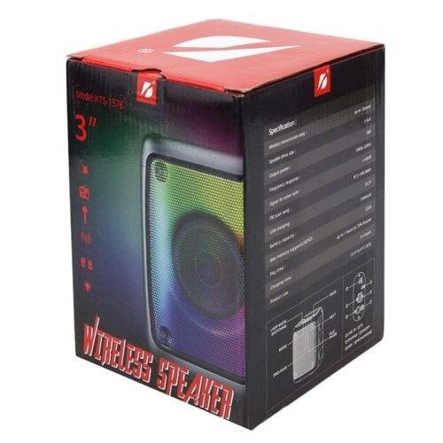 اسپیکر KTS 1576 گزینهای عالی برای افرادی است که میخواهند یک اسپیکر قابل حمل با اثر رقص نور داشته باشند. اندازهی کوچک این اسپیکر باعث میشود تا آن را آسان بردارید و از پشتیبانی از منابع مختلفی از جمله بلوتوث، کارتTF ، USB و رادیو FM برای پخش موسیقی استفاده کنید. همانطور که پیشتر اشاره شد، این اسپیکر دارای ظرفیت باتری 1500mAh است که اگر صدا تا 75 درصد بالا باشد تا یک ساعت شارژ نگه میدارد. ویژگی کاهش نویز فعال به کاهش نویز پسزمینه کمک میکند و صدایی روان و رسا را به همراه میآورد. این اسپیکر کوچک و جمعوجور است که حمل و استفاده از آن را در حین حرکت آسان میکند. این اسپیکر یک وسیله سبک و قابل حمل است که میتواند برای مهمانیها، فعالیتهای خارج از منزل و رویدادهای دیگر استفاده شود.