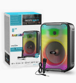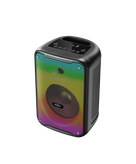اسپیکر قابل حمل gts 1726 یک اسپیکر جمع و جور ولی با صدایی فوق العاده بلند و با کیفیت است که دارای یک ساب 8 اینچی و یک تیوتر 1 اینچی می باشد که می تواند صدایی با قدرت 3000وات پمپو را تولید کند.این اسپیکر از بلوتوث ورژن 5 پشتیبانی کرده و دارای درگاه فلش ، مموری و ای یو ایکس می باشد.این اسپیکر دارای پارتی لایت بسیار زیبا و حساس به صدا است که می توانید آن را به چند حالت مختلف تغییر دهید همچنین بر روی پنل این اسپیکر کلیدی مجزا به اسم BASS تعبیه شده که با روشن کردن آن باس دستگاه چند برابر خواهد شد.داخل باکس این اسپیکر یک عدد میکروفن با سیم قرار دارد که می توانید توسط آن لحظات مفرحی رو به خوانندگی و شنیدن موسیقی بپردازید.