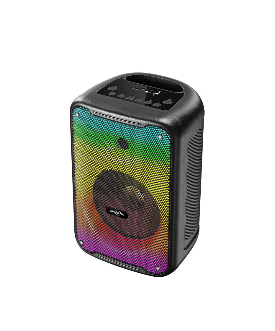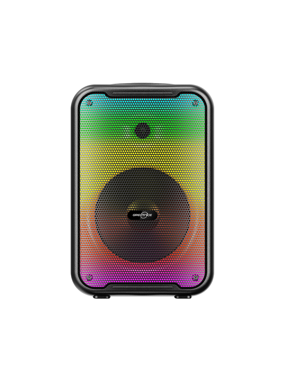 اسپیکر قابل حمل gts 1726 یک اسپیکر جمع و جور ولی با صدایی فوق العاده بلند و با کیفیت است که دارای یک ساب 8 اینچی و یک تیوتر 1 اینچی می باشد که می تواند صدایی با قدرت 3000وات پمپو را تولید کند.این اسپیکر از بلوتوث ورژن 5 پشتیبانی کرده و دارای درگاه فلش ، مموری و ای یو ایکس می باشد.این اسپیکر دارای پارتی لایت بسیار زیبا و حساس به صدا است که می توانید آن را به چند حالت مختلف تغییر دهید همچنین بر روی پنل این اسپیکر کلیدی مجزا به اسم BASS تعبیه شده که با روشن کردن آن باس دستگاه چند برابر خواهد شد.داخل باکس این اسپیکر یک عدد میکروفن با سیم قرار دارد که می توانید توسط آن لحظات مفرحی رو به خوانندگی و شنیدن موسیقی بپردازید.