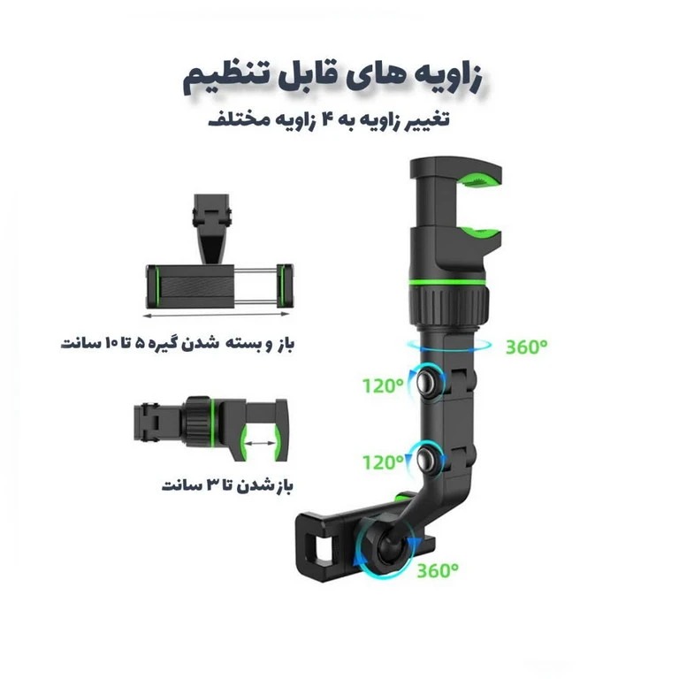 هولدر موبایل آینه ماشین مدل holder clip یک پایه نگهدارنده گوشی مناسب برای آینه دید عقب خودرو و یا حتی در حانه و آشپزخانه و … سازگار با گوشی های هوشمند سایز 4 تا 6.9 اینچ است. طراحی انعطاف پذیر به لطف بازوی چند مفصلی قابلیت تنظیم در زوایای مختلف با ساختار محکم و بدون لغزش در هنگام رانندگی، کارهایی از قبیل استفاده از مکان یاب GPS موبایل یا مدیریت موسیقی و … بدون نگرانی از افتادن یا تکان خوردن گوشی خود با خیال راحت به رانندگی ادامه داد؛ حتی میتوانید هلدر را به صندلی عقب نصب و سرنشیان به تماشای فیلم و … بپردازند تا در زمان سفر خسته نشوند. همان طور که گفته شد این هولدر موبایل آینه ماشین مدل holder clip مجهز به یک بازوی متحرک قابل چزخش می توانید آزادانه در زوایای مختلف بالا و پایین، چپ و راست گوشی را جابه جا و بهترین زاویه دید را پیدا کنید. از خاصیت این پایه وجود یک براکت و توپک با قابلیت چرخش 360 درجه که به هنگام نصب گوشی این امکان را میدهد، سری استند را در همه زوایا بچرخانید و بهترین زاویه دید را انتخاب کنید.براکت این مدل توسط دو گیره محکم و فنر دار که میتواند تا سایز 6 تا 10 سانتی متر باز شده و بدلیل جنسیت نرم در عین حال محکم به گوشی شما آسیب نزده در عین حال آن را محکم نگه دارد. جنسیت محکم و عالی ساخته شده از ABS + فلز با نصب آسان وسیله بسیار کارآمد در خودرو میباشد.