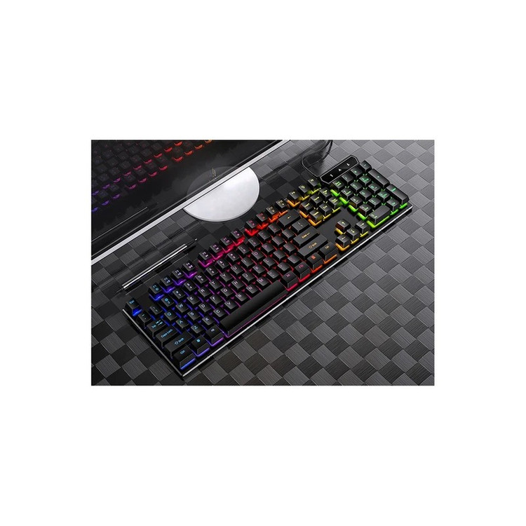 توضیحات چراغ پس زمینه صفحه کلید: دارای نور پس زمینه چند رنگ بدون قابلیت تغییر یا کم و زیاد شدن جهت روشن و خاموش کردن نور ضمینه کلید SL واقع در بالای کیبورد سمت راست را فشار دهید همچنین کیبورد را به پورت های usb پشت کیس وصل کنید.