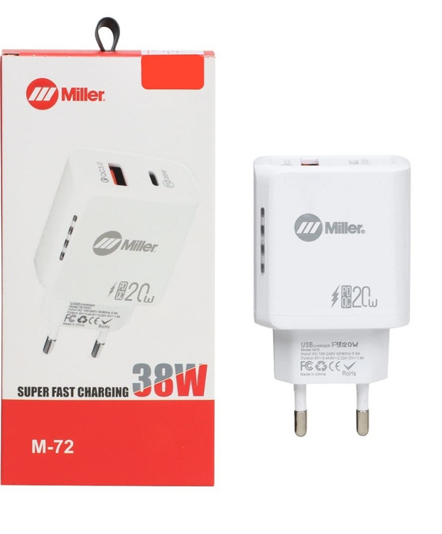 با استفاده از شارژر دیواری سوپر فست و PD دو پورت مدل M-72 38W از سری شارژرهای دیواری برند میلرباتری موبایل خود را ، با استفاده از QuickCharge 3.0 +PD سریع تر از همیشه شارژ کرده و در زمانتان صرفه جویی کنید.